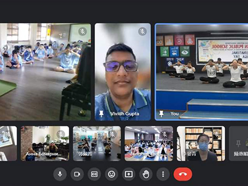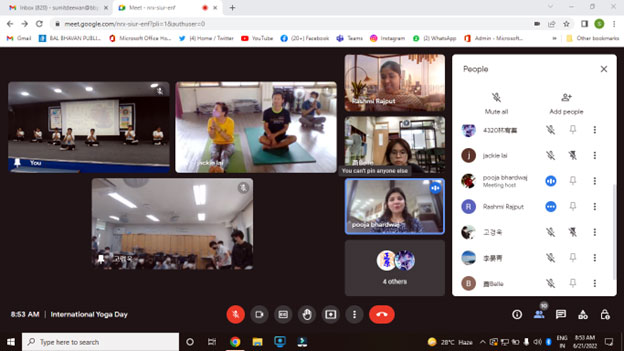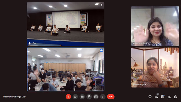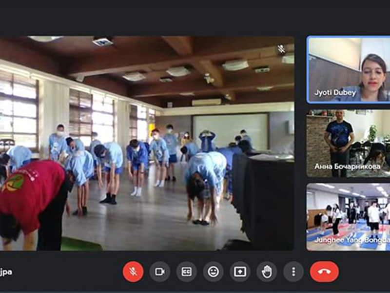 International Yoga Day-2023, had been truly incredible with our friends from various nations joining us for the yoga session. We are grateful to Governor lyceum school, Siberia, Russia, Taichung Beixin Jr. High School, Taiwan, Zhuqi Elementary School, Taiwan, Bongdam High School, South Korea, for becoming the part of the session. It was pleasure receiving them and teaching them yoga postures. India being world Guru for initiating International Yoga Day, takes pride on its ancient vedic practice of connecting mind body and soul.