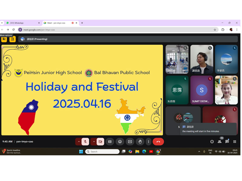 In a remarkable celebration of global camaraderie, Bal Bhavan Public School, India, collaborated with Peihsin Junior High School, Taiwan, on a vibrant virtual platform. Students from both nations exchanged insights about their cherished festivals and national holidays, weaving a beautiful tapestry of tradition and understanding. This enriching dialogue marked a fruitful amalgamation of international ties and cultural unity.