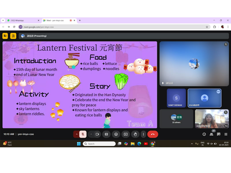 Our Indian traditions came to life on screens as we guided our Taiwan friends through the art of lighting diyas, the soulful tunes of Diwali songs, and the profound essence of our celebrations. It was more than just a meeting; it was a heartwarming experience of cultural fusion, leaving us grateful for the newfound connections that illuminated our virtual space. Gratitude to our friends in Taiwan for embracing and celebrating the vibrant richness of Indian culture with us!