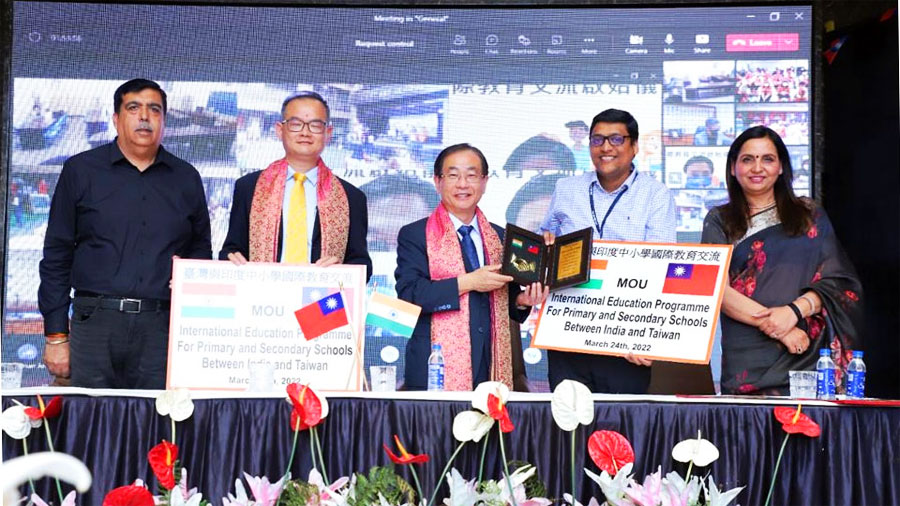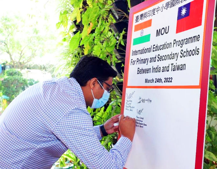 Yet another exciting venture had been the International Collaboration school engaged itself with Embassy of Taiwan, wherein we will now be collaborating with Taichung Beixin Junior High School, Taiwan, for next three years, engaging ourselves in various learning opportunities. The event had been an enthralling experience where the school Principal visited the Embassy of Taiwan for the MOU signing ceremony. The elaborated ceremony was attended by 26 School -from India and the schools from Taiwan joined Virtually , where the ‘Memorandum of Understanding’ was signed between schools to collaborate into cultural and educational exchange programs .