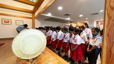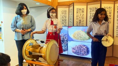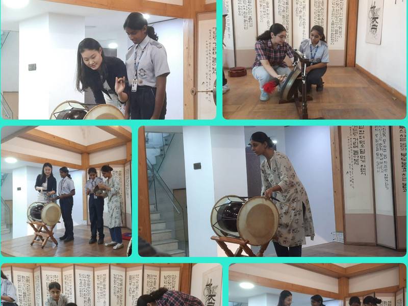 The visit to KCC (Korean Culture Centre) was undertaken by students on 21st April, 2022, wherein the students were accompanied by school teachers. It was an exciting venture with opportunity to dive into the Korean culture, understanding the origin of its language, students were engrossed into activities like playing Korean musical instruments, trying out Korean attires, learning a few aspects of Tae- Kwon- do, diving into Korean literature, and tasting the Korean cuisine. The students were elated to learn the Korean greeting gestures and were delighted to have this experience.