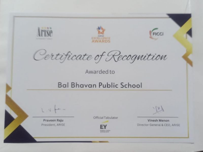 Our school has been honoured with a Certificate of Recognition at the 3rd edition of the ARISE Excellence Awards in collaboration with FICCI.