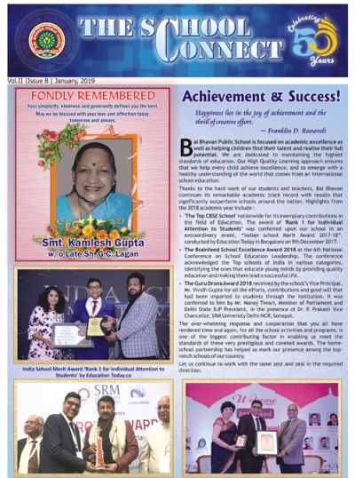 The School Connect is intended to foster a connection between School and Students. The newsletter also give parents a say in what information is presented, allow them to build trust in school and further strengthen parental involvement in school programs such as Field Trips, Events and Community Happenings etc. The School Connect gives opportunity to students to write, to research on variety of subjects and embeds ethical practices long before they head out in the real world.